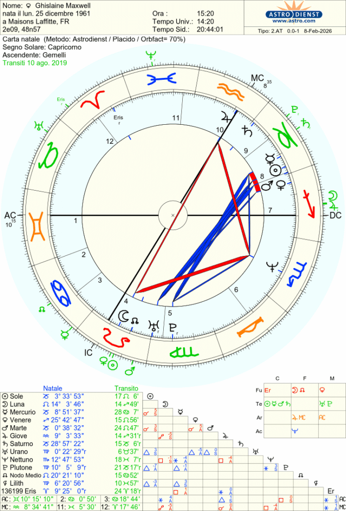 Discorso diverso vale invece per Ghislaine che, se non era la mente dei due, ha fornito un supporto più che valido alle sciagurate imprese del compagno, anzi, forse le ha alimentate. Sempre stando a quanto suggeriscono gli astri.